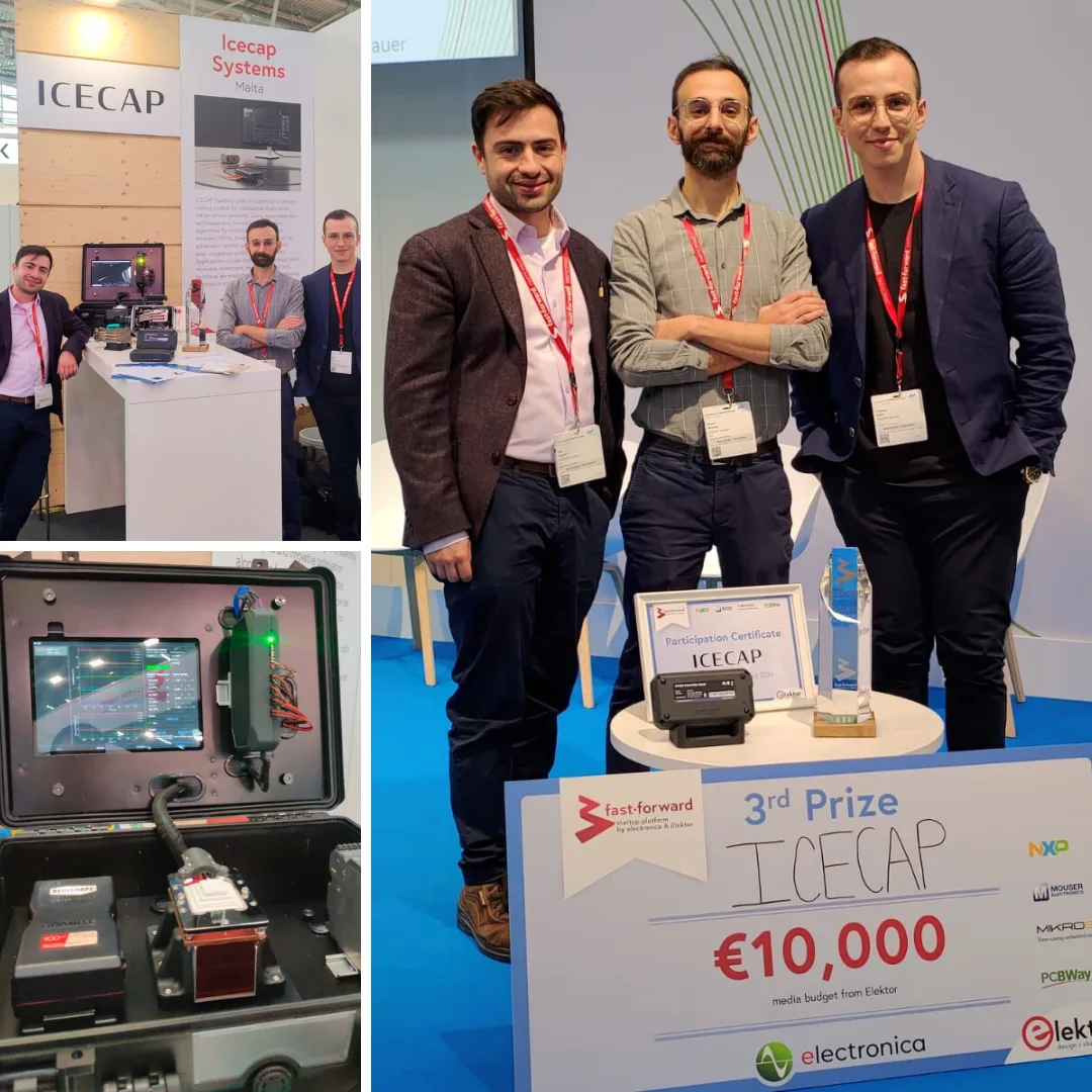 We are excited to announce that ICECAP Systems placed third in the Electronica Fast Forward competition! This startup challenge, hosted by Elektor International Media, showcased some of the most innovative companies in the industry. We were honored to be selected as a finalist alongside SpeedPox GmbH, BTRY, and Banyan.eco. Each of these companies is developing cutting-edge technology, and it was inspiring to be in their company.